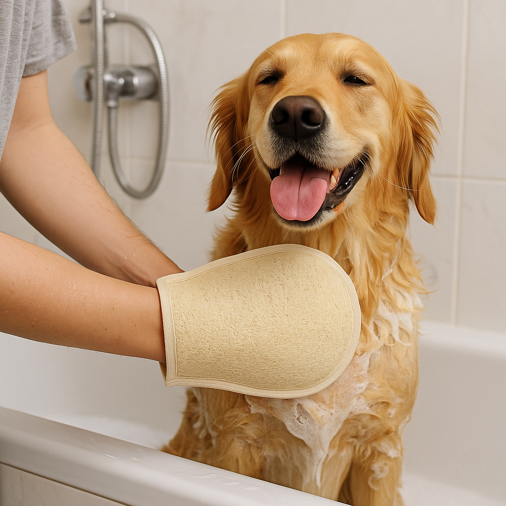 For pet grooming professionals and pet owners, this natural luffa glove provides gentle yet effective coat cleaning and massage. The loofah texture removes loose fur, dirt, and dander while the glove format ensures complete control during bathing. Natural fibers are safe for all coat types and won’t irritate sensitive pet skin like synthetic brushes might.