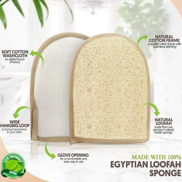 Transform your skin with EGEXO’s Natural Loofah Exfoliating Glove – handcrafted from 100% authentic Egyptian loofah. This premium body scrubbing mitt (16cm × 21cm) combines natural loofah fibers with soft cotton backing for comfortable, effective full-body exfoliation.